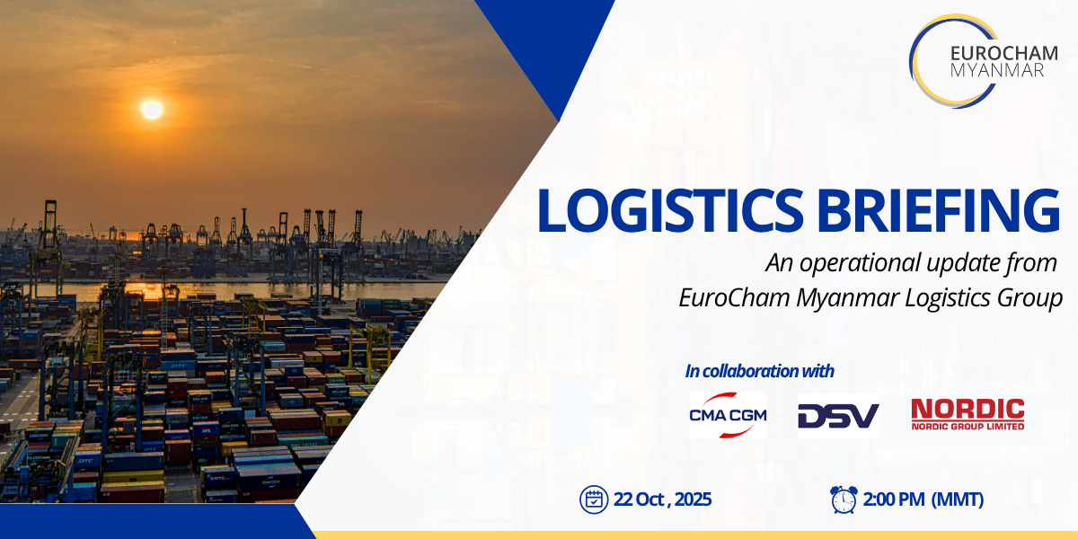 EuroCham Myanmar will host an exclusive online Logistics Briefing on Wednesday, 22 October 2025, at 2:00 PM (MMT).