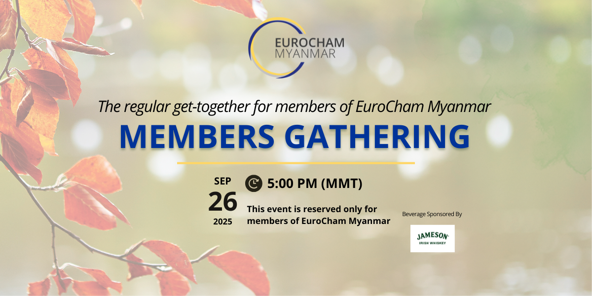 EuroCham Myanmar will host a regular Members Gathering on Friday, 26 September 2025. This event provides a relaxed setting to reconnect with fellow EuroCham Myanmar members, representatives from member state embassies, and other key stakeholders, while exchanging updates and exploring business opportunities.