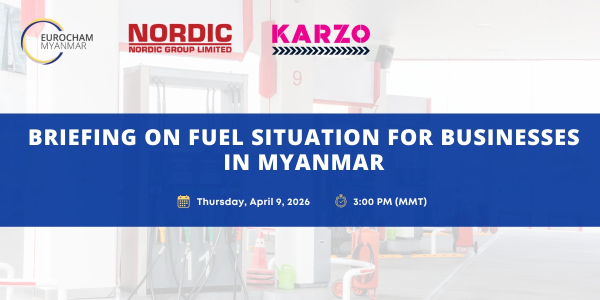 EuroCham Myanmar will host a member-exclusive “Fuel Situation Briefing Session for Businesses in Myanmar” on 9th April 2026 (Thursday) at 3:00 PM (MMT). In light of the ongoing Middle East conflict and its repercussions on the local market, Myanmar is currently facing significant fuel challenges. To support our members in navigating this volatility, experts from our Logistics Advocacy Group, Nordic Group Limited and Karzo Company Limited will lead this operational update to share timely data and strategic outlooks while offering practical perspectives on navigating ongoing disruptions and operational constraints.