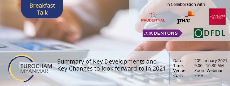 As we look forward to a post-pandemic recovery in the year 2021, our experts from the EuroCham Myanmar Legal and Tax Advocacy Group will round up the key developments in 2020 on the topics of legal and tax, not limited to: